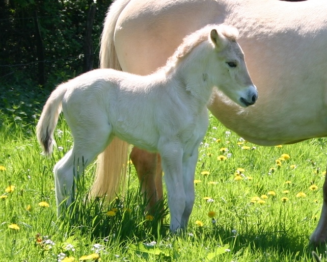 Kjarvin ist der einzige Hellbraunfalbe aus dieser Anpaarung und wurde zweijährig als Wallach verkauft. Er ist Familienpferd und genießt es in vollen Zügen. Auch Kjarvin hat gute Bewegung und einen liebenswerten Charakter. Kjarvin heißt heute Joker.